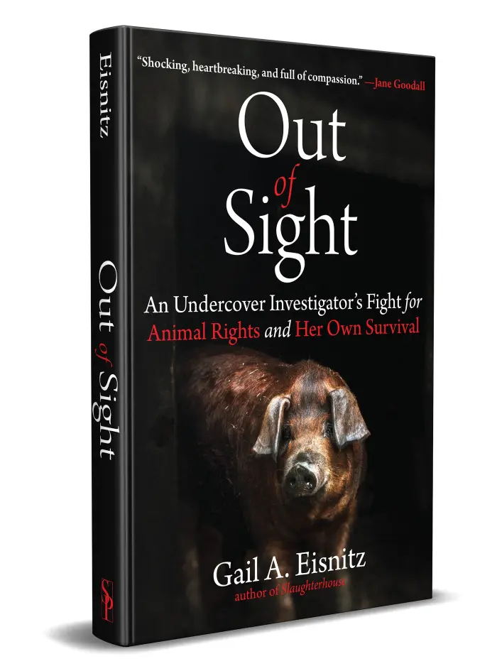 A medida que la autora seguía documentando abusos inhumanos en mataderos y granjas industriales de cerdos, terneros y lecheras —detalles vívidos que se encuentran en Out of Sight—, los síntomas de su trastorno no diagnosticado de procesamiento visual, que había soportado desde su infancia, empeoraron drásticamente. Durante su campaña para exponer los abusos en la industria cárnica, Gail vivió giros sorprendentes en su vida, incluyendo un diagnóstico de cáncer de mama a los 35 años, un robo en el que uno de los tres asaltantes disparó a una persona en su presencia, encubrimientos elaborados por el Secretario de Agricultura de EEUU y un gobernador estatal, y continuos enfrentamientos con fiscales generales estatales mientras luchaba por obtener procesamientos de los abusadores de animales.